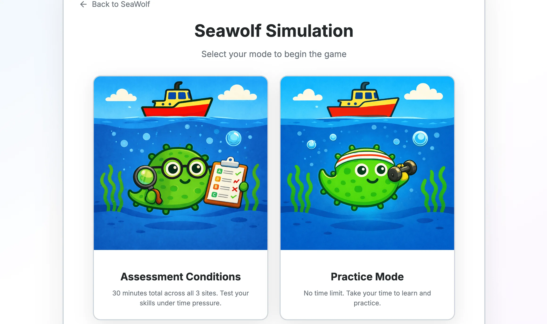 You only receive one chance at the official Seawolf test. Practice making fast, informed decisions under pressure — not learning the structure for the first time during the assessment.